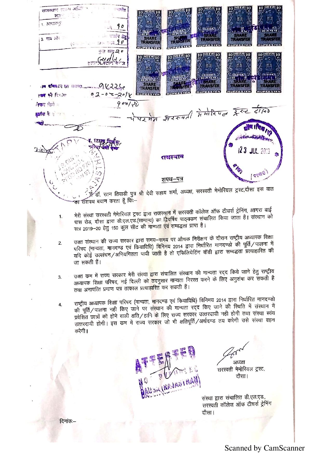 view detailSaraswati College Of Teacher's Training is organised by Saraswati Memorial Trust, Dausa. This Trust was constituted and registered on 2000 and registration number is 2-Dausa-2000, with a pious objective of Educational, Social & Economical development.
