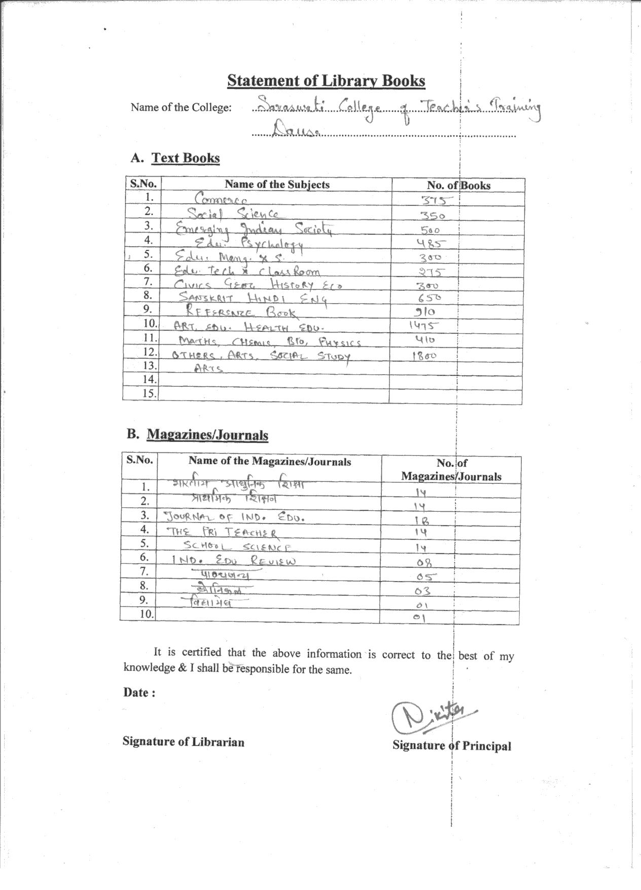 The vision of the Saraswati College Of Teacher's Training is to provide quality teacher education to all Students enrolled in our college. Students are given a thorough knowledge and build foundation in both the theoretical and practical aspects of teaching.